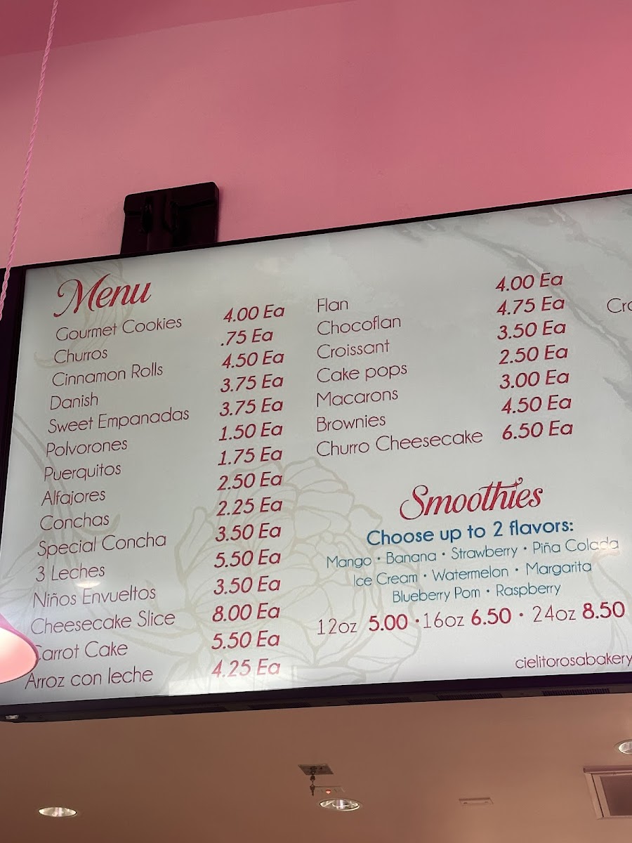 The menu at Cielito Rosa is a delightful fusion of savory and sweet. Start your day with a well-crafted cappuccino ($5.00) or an iced vanilla rose latte that promises to awaken your senses with its floral notes. Or perhaps indulge in their refreshing smoothies ($6.50) and enjoy a burst of fruity flavor. The churros, priced at just $1.00 each, are a must-try—golden, sugared, and crisp on the outside while soft and fluffy inside, they’re impossible to resist. For a more decadent treat, the churro cheesecake ($6.50) offers a delightful fusion of flavors that will leave you craving more.