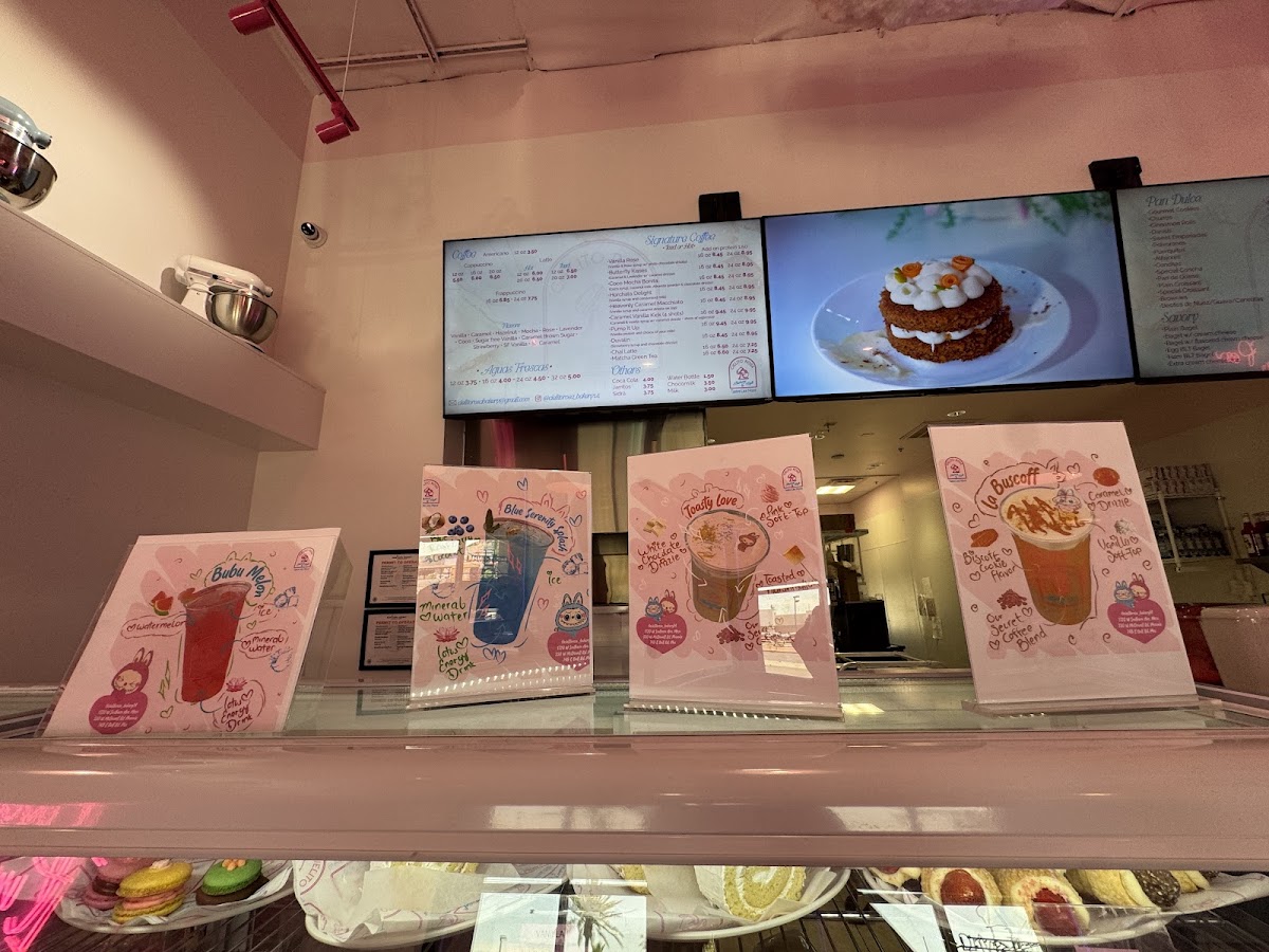 From the moment you step inside, you'll be greeted by a beautifully decorated space draped in soft pinks and delicate details. The ambiance is perfect for a casual hangout with friends, a sweet date, or simply a moment of solitude with a book and a coffee in hand. The heart-shaped straws featured in their drinks add a charming touch that perfectly complements the café’s aesthetic.